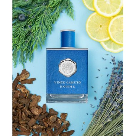 Vince Camuto Homme by Vince Camuto is a Woody Aromatic fragrance for men. The second fragrance for men takes the same shape of modern flacon, but is covered in navy blue leather this time and accentuated with seal of the brand in metallic silver form.